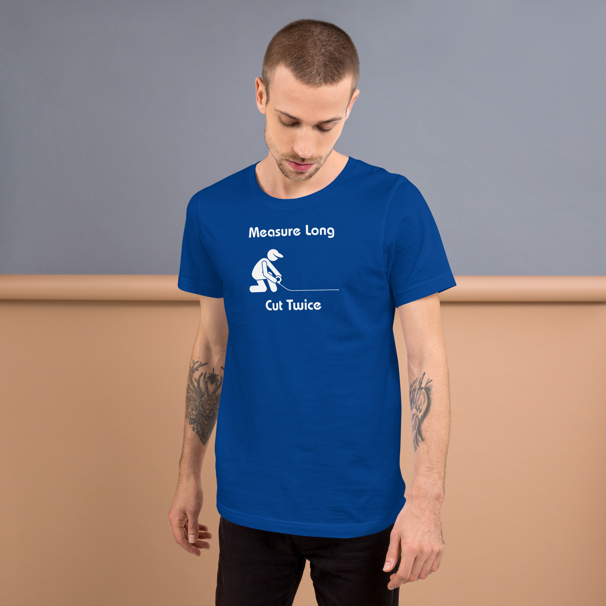 “Measure long, cut twice” is funny, familiar, and painfully accurate, printed in a clean, timeless design that works anywhere.